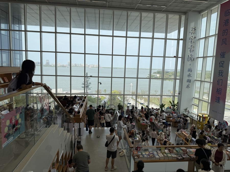 数据显示,10月1日至3日,港城广场区域客流超5万人次,总营业额约205万元。作为网红打卡地,朵云书院的热闹程度更是远超预期,长假以来,日均客流突破5千人次,书架间的走道里满是读者,靠窗的观景座位更是一位难求,不少人点上一杯咖啡,在书香与湖景中消磨一下午。